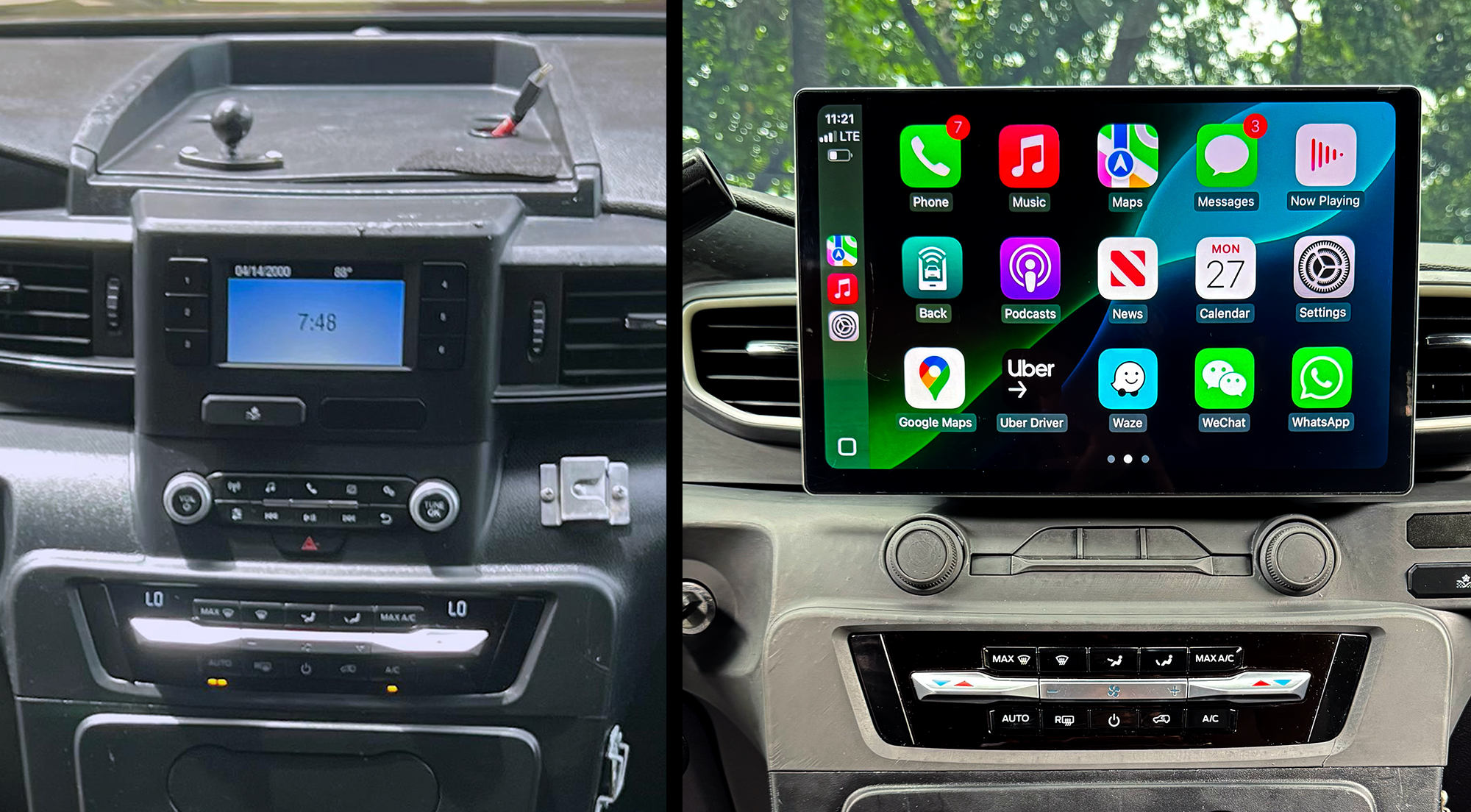 Modern 13″ Android touchscreen replacement display with wireless Apple CarPlay, Android Auto, GPS, Bluetooth, and full OEM integration. Designed for seamless installation and daily use.